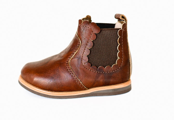Our Maple Boot blends function with charm; crafted from rich, genuine leather and detailed with scalloped edges. The elastic sides make for easy on-and-off independence, while its timeless design ensures it never goes out of style.