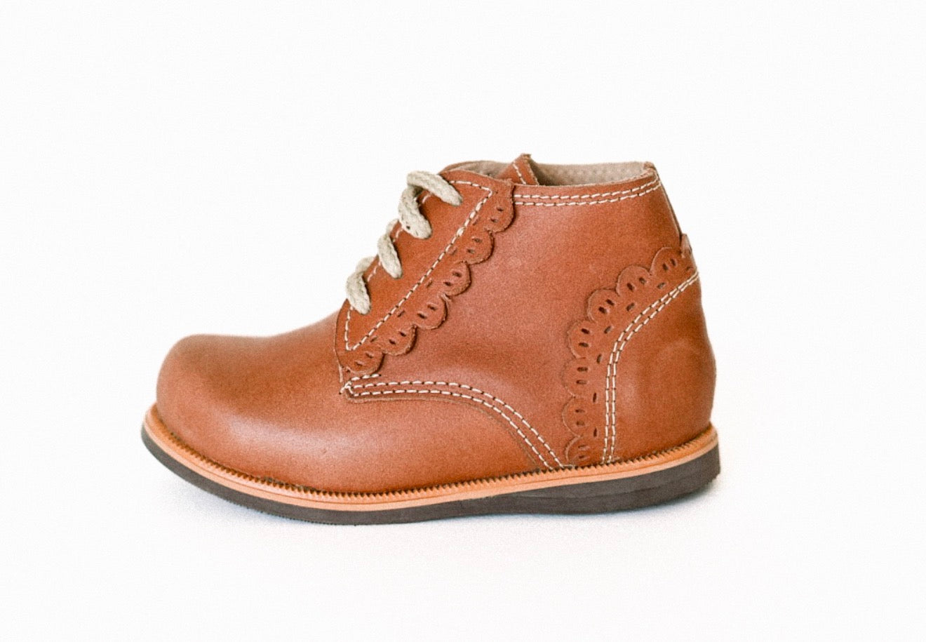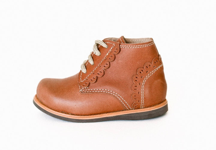 The Nora Boot brings a touch of old world charm to a modern silhouette with its scallop edging. With subtle stitching and a structured profile, it’s made for little ones who move with curiosity and grace... season after season.